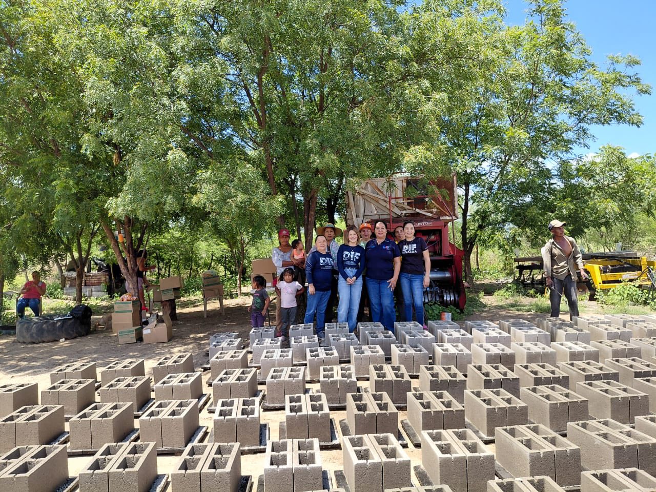 Cada familia recibe 500 piezas de bloc, mismas que ellos fabrican con supervisión, fomentando la participación comunitaria y el aprovechamiento de recursos para levantar su propio hogar.