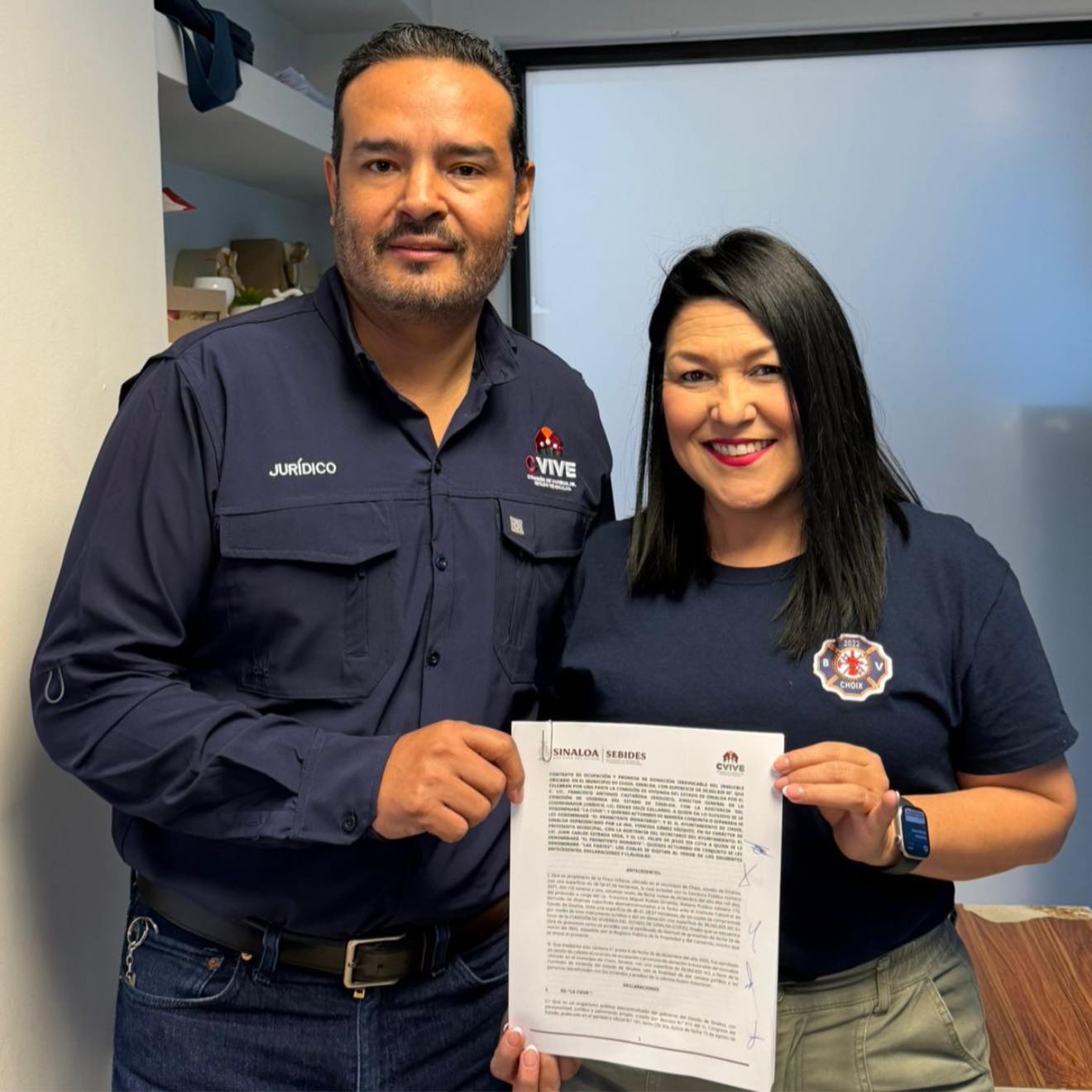 En el Ayuntamiento de Choix formalizamos, junto al Gobierno del Estado de Sinaloa, la donación de un predio de 3.056 hectáreas, una acción que permitirá brindar certeza jurídica a 100 familias afectadas por el desplazamiento forzado interno en nuestro municipio.