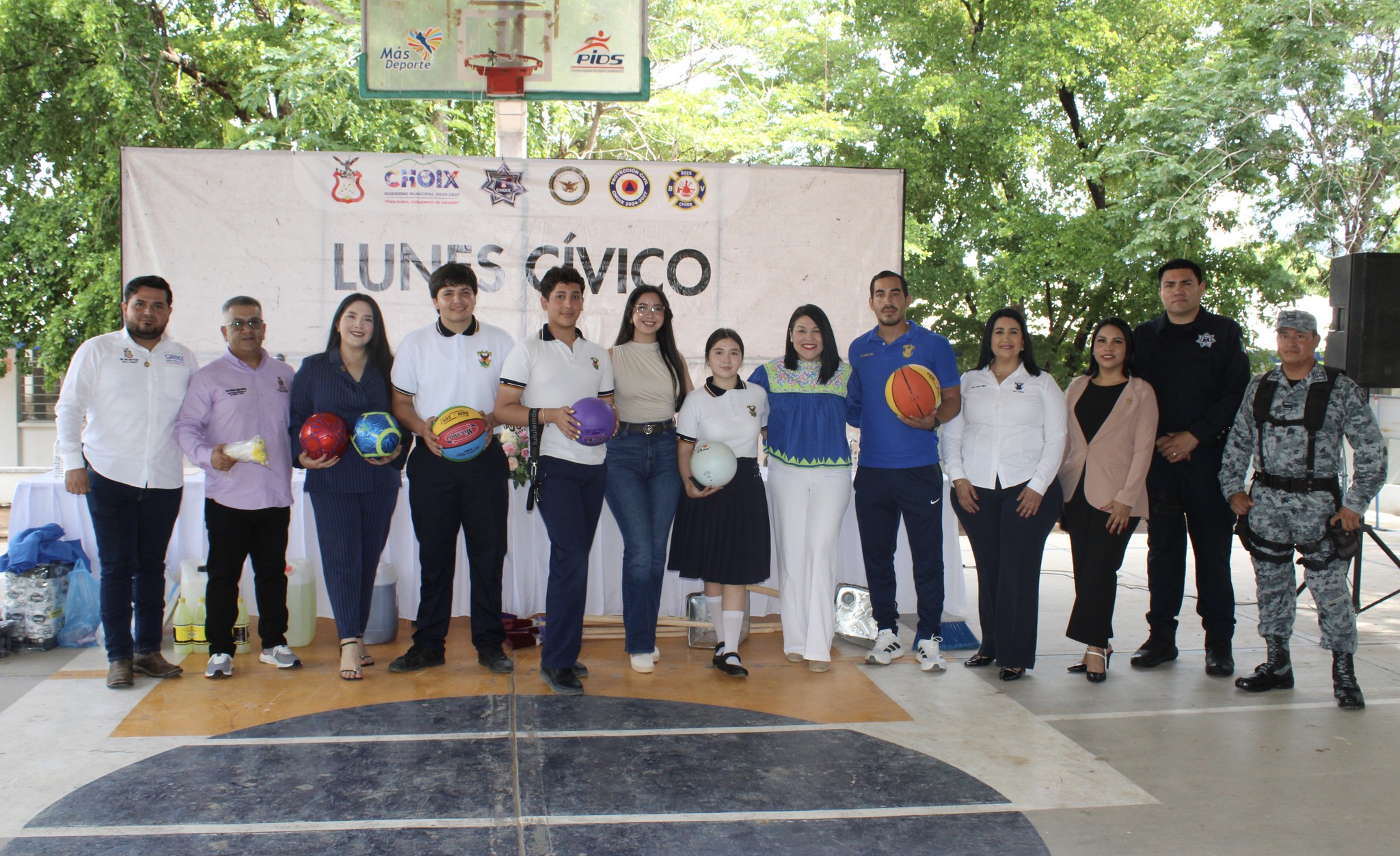La alcaldesa, acompañada de representantes de la Guardia Nacional, Seguridad Pública, Servicios Regionales de la SEPyC, personal del H. Ayuntamiento y autoridades educativas de esta institución, encabezó la entrega de material didáctico, deportivo y de limpieza, como parte de su compromiso con el fortalecimiento y desarrollo de la educación en nuestro municipio.